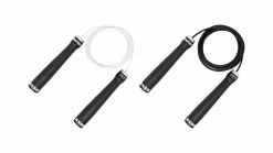 Available here with ergonomic dual bearing handles in a textured black finish, the Rapid Fit Jump Rope comes with your choice of two different PVC-coated, aircraft-grade speed cables: